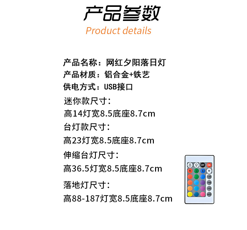 Light Color: Sun,Sunset,Sunset red,Rainbow,15 colors