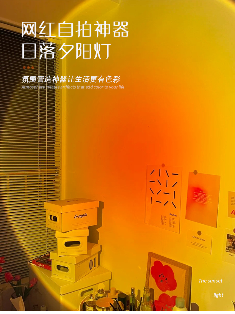 LED Sunset Projection Rainbow Dusk Atmosphere Lamp USB Home Shop Bedroom Walls Decoration Photo Background Bedside Night Light